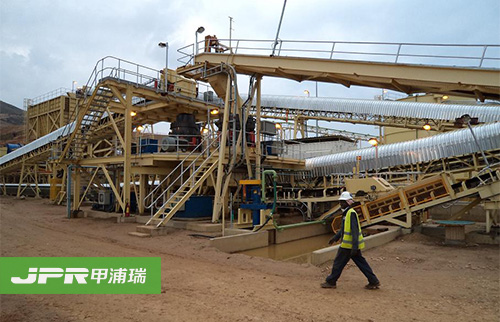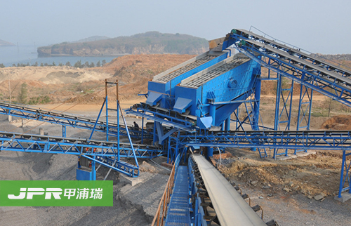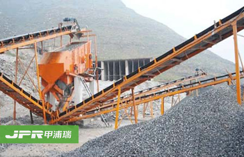 碎石生產(chǎn)線(xiàn)主要由振動(dòng)給料機、顎式破碎機、反擊式破碎機、振動(dòng)篩、膠帶輸送機、集中電控等設備組成。為滿(mǎn)足客戶(hù)不同的加工需要,可配備圓錐式破碎機、除塵 設備等。大塊石料經(jīng)料倉由振動(dòng)給料機均勻地送進(jìn)鄂式破碎機進(jìn)行粗碎,粗碎后的石料由膠帶輸送機送到反擊式破碎機進(jìn)行進(jìn)一步破碎;細碎后的石料由膠帶輸送機 送進(jìn)振動(dòng)篩進(jìn)行篩分,篩分出幾種不同規格的石子,滿(mǎn)足粒度要求的石子由成品膠帶輸送機送往成品料堆;不滿(mǎn)足粒度要求的石子由膠帶輸送機返料送到反擊式破碎 機進(jìn)行再次破碎,形成閉路多次循環(huán)。成品粒度可按照用戶(hù)的需求進(jìn)行組合和分級,為保護環(huán)境,可配備輔助的除塵設備。
